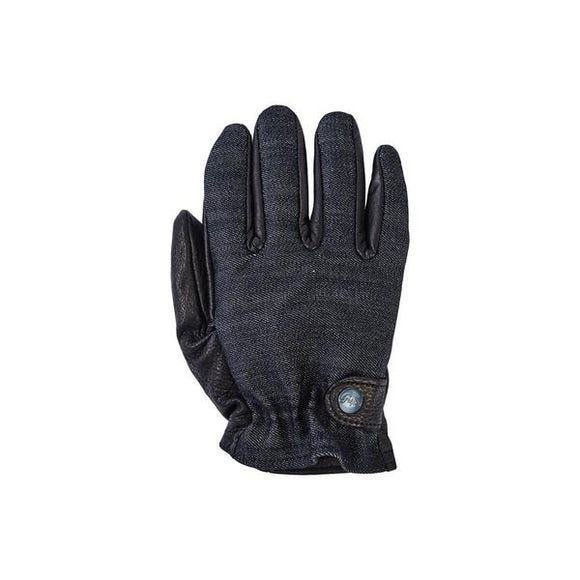The Kuro Ranger is Grifters Spring/Summer version of the Onyx Ranger. This glove is short wrist Italian Candiani Selvedge Black 13.5 oz Denim and Ultra Soft Deer Hide. This glove features snaps so you can connect the two gloves as well as attach them to your helmet, if you wear one. This glove is made in the USA. These gloves wear in like a classic pair of jeans with the added protection of deerskin.